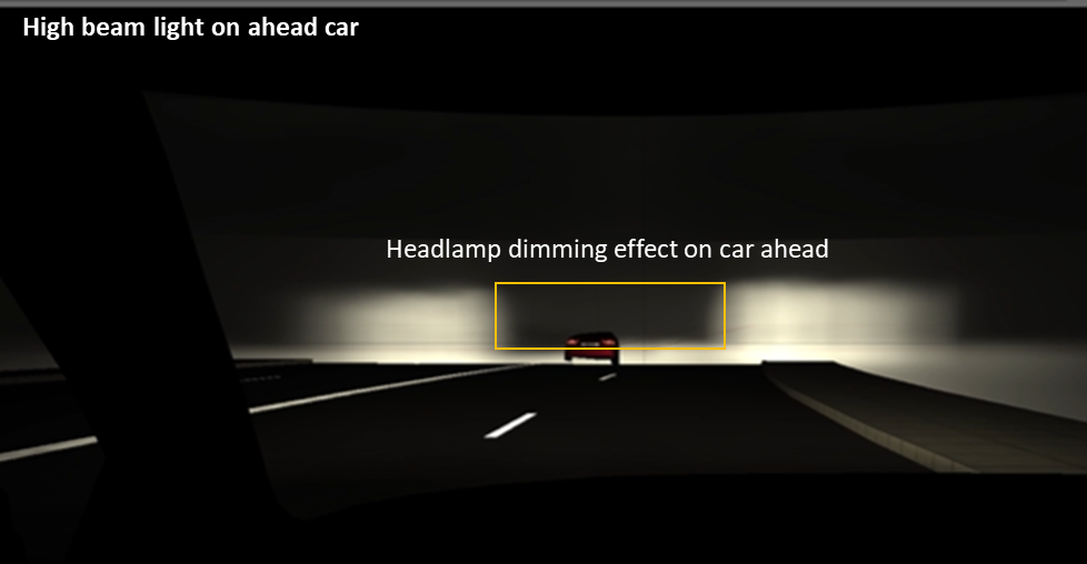 - 반대 차선의 마주 오는 차량과 전방 차량의 운전을 방해하지 않기 위한, 주변 환경에 따라 특정 구역의 헤드램프 밝기 조절