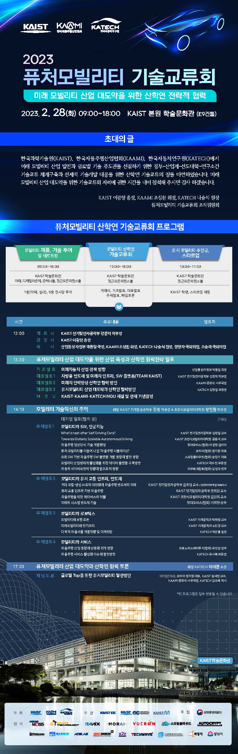 - 장 소: KAIST 학술문학관 정근모 컨퍼런스 홀
